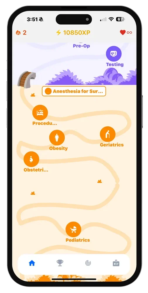 Study for boards, earn AANA-approved Class A CE credits or ANCC-approved credits, and master anesthesia content with a playful, science-backed mobile app.