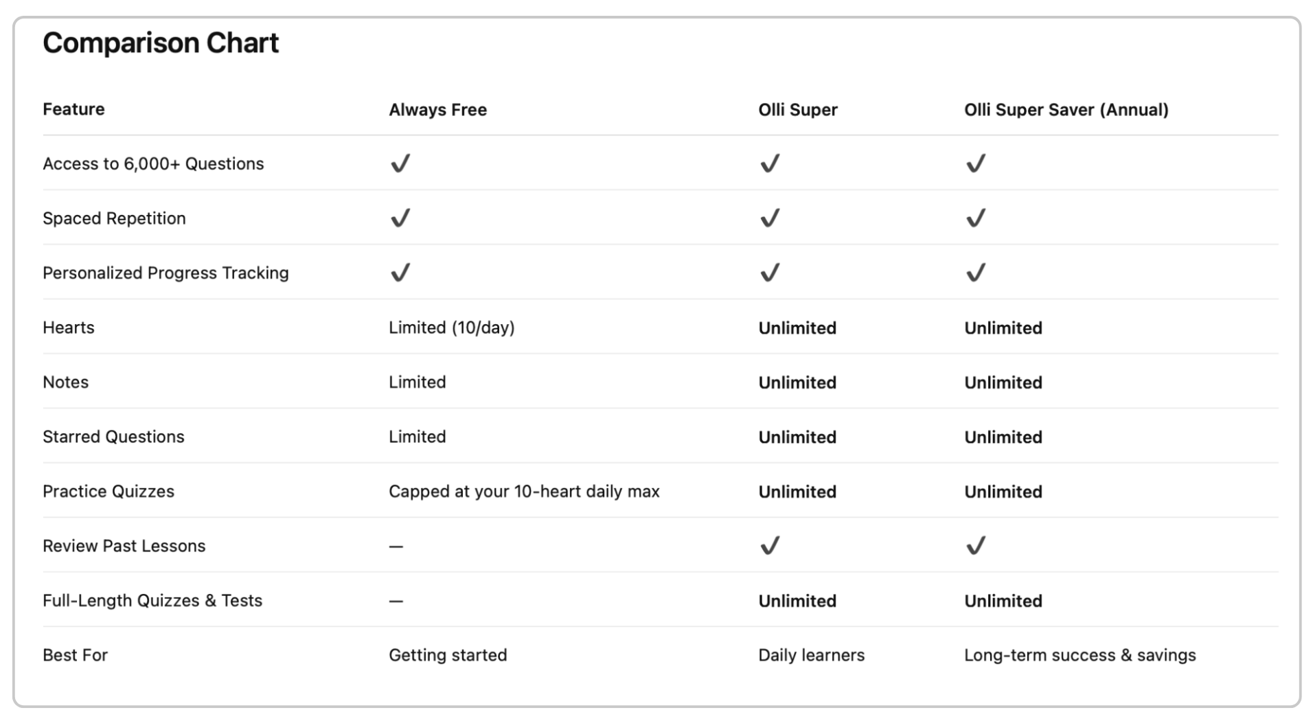 “Overall, the app is worth your time and I really recommend the Olli Super or Super Saver so you’re able to play and practice with unlimited attempts! 100% worth it, as I consider this one of my #1 study tools!!! Thanks Ollivate!”